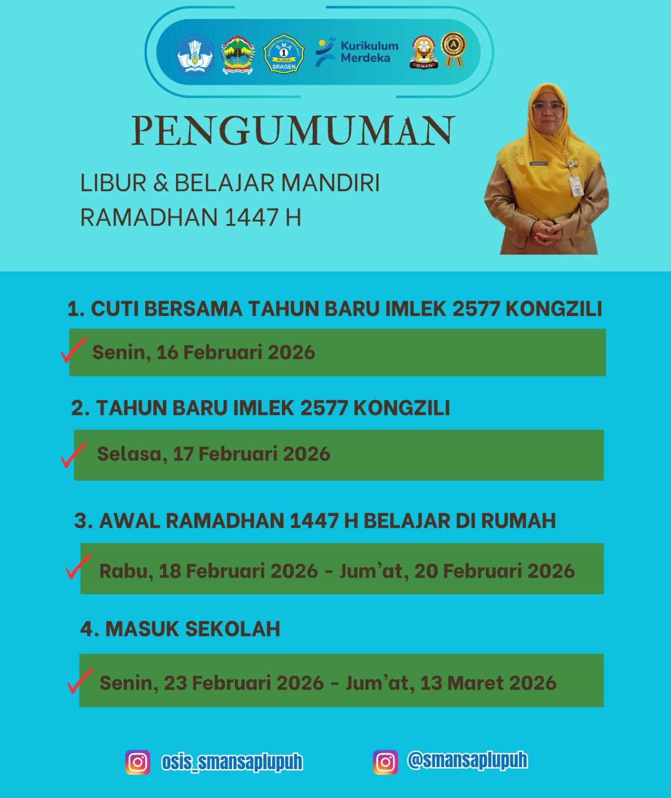 Selamat Datang di Website SMA Negeri 1 Plupuh AMPUH (Aktif, Mandiri, Prestatif, Unggul, Humanis) 4...